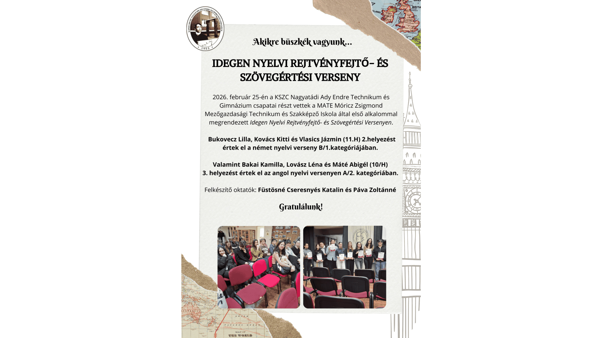 A nagy népszerűségnek örvendő hatosztályos gimnáziumi képzésünkben tanuló diákjaink két idegennyelvet magas óraszámban elsajátítva a 12. osztály végére nyelvvizsga-bizonyítványt szerezhetnek. A továbbtanulásuk iránt elkötelezett oktatók és az emelt szintű érettségi előkészítők biztosítják a felvételt a felsőoktatásba.