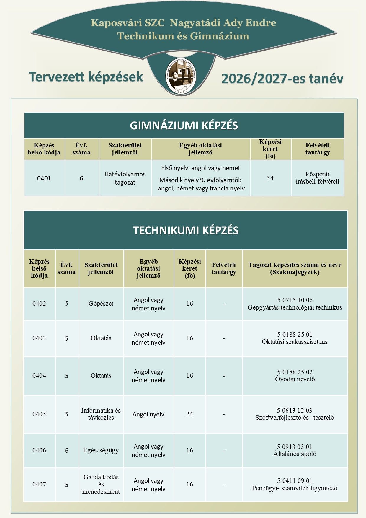 Meghirdetett szakképesítések 2025/2026-os tanév (FELNŐTT)