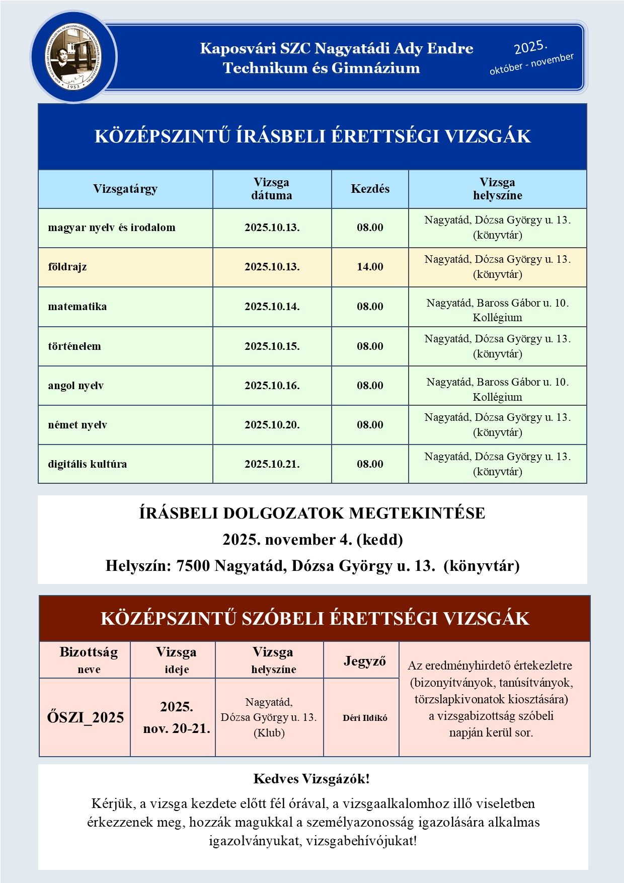 Középszintű írásbeli érettségi vizsgák (ŐSZ)